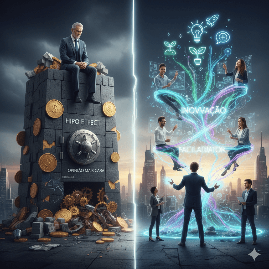 O Efeito HIPO (Opinião Mais Cara) é o assassino da inovação. O facilitador é o antídoto: use a estrutura certa para que a melhor ideia prevaleça no seu time.